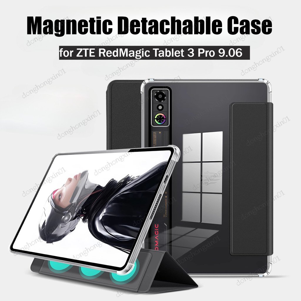for ZTE RedMagic Tablet 3 Pro REDMAGIC Astra 9.06 inch PU Leather Magnetic Flip Case AirBag Detachable Clear Back Shell
