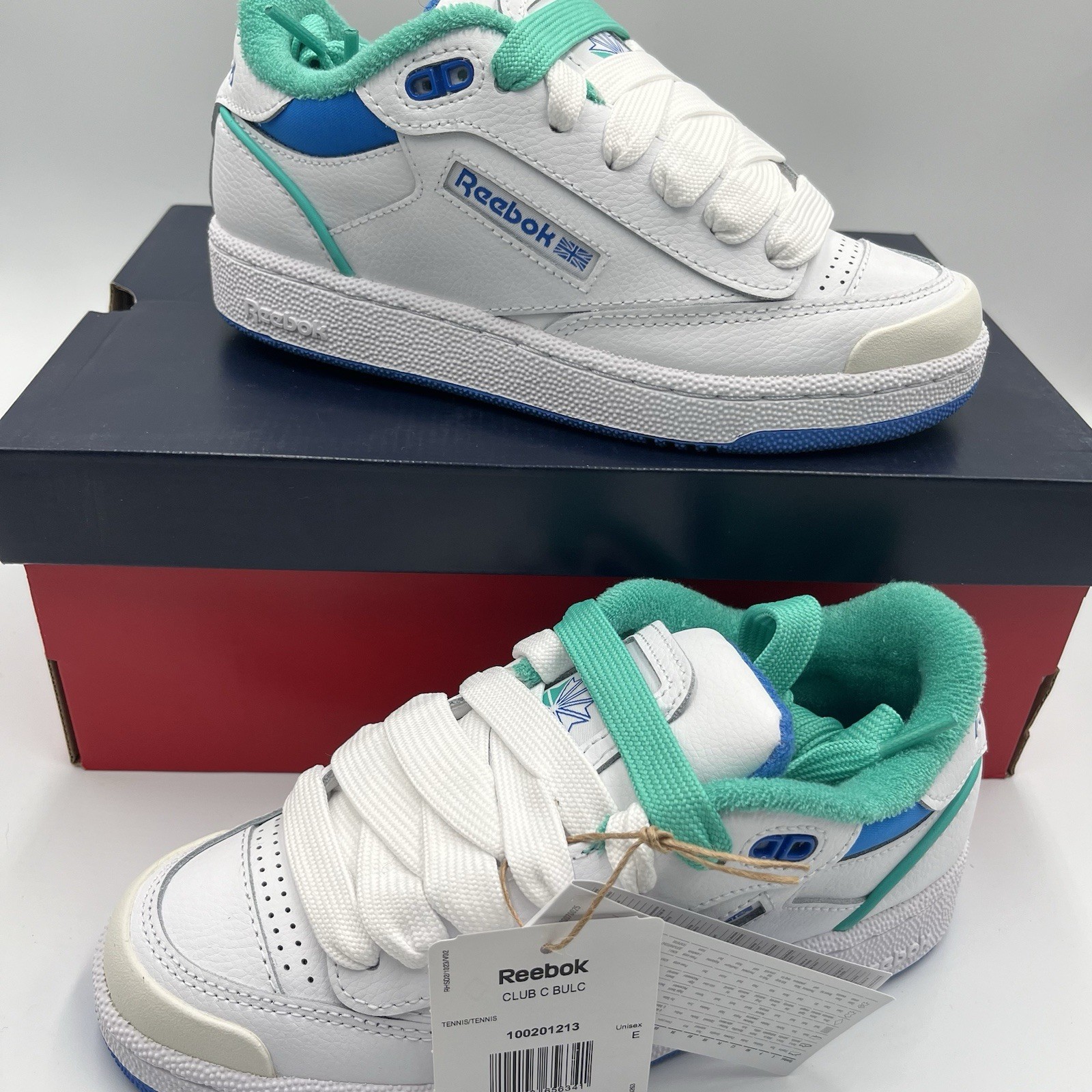 Reebok Classics Club C Bulc Size UK 3 Lace up Tennis White Green & Blue BNIB