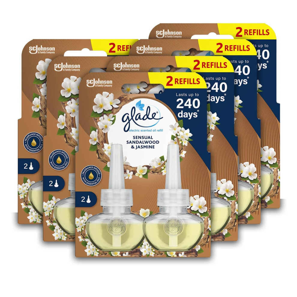 Glade Plug in Air Freshener Refill, Electric Scented Oil Room Air Freshener, Sandalwood & Jasmine, Pack of 6 (6 x 20ml)