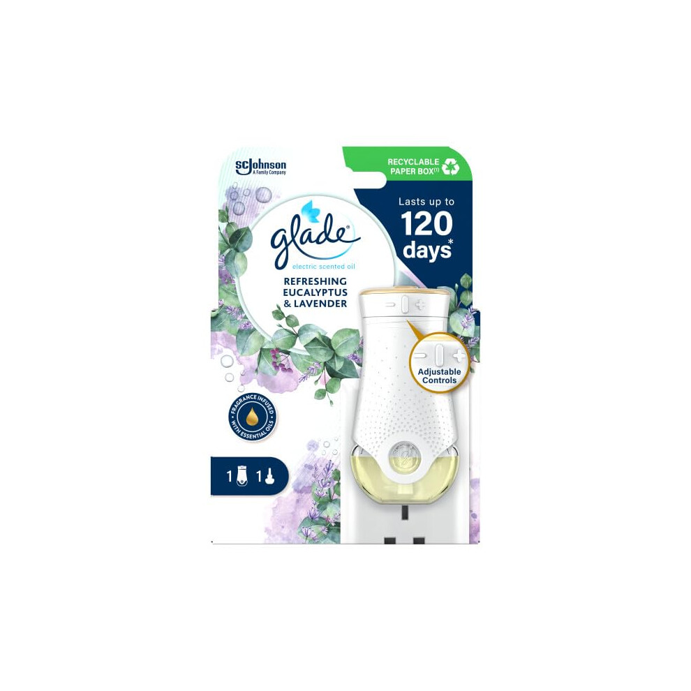 Glade Plug in Air Freshener Holder and Refill, Electric Scented Oil Room Air Freshener, Eucalyptus & Lavender, Pack of 4, (4 x Holder and 4 x 20 ml