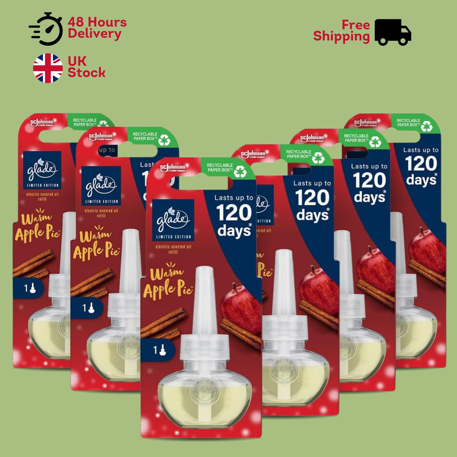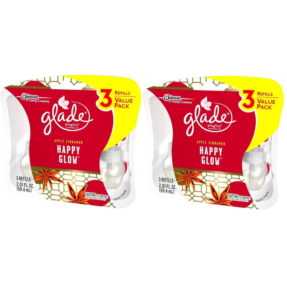 6 X Glade Electric Plug In Refill Apple Cinnamon Happy Glow