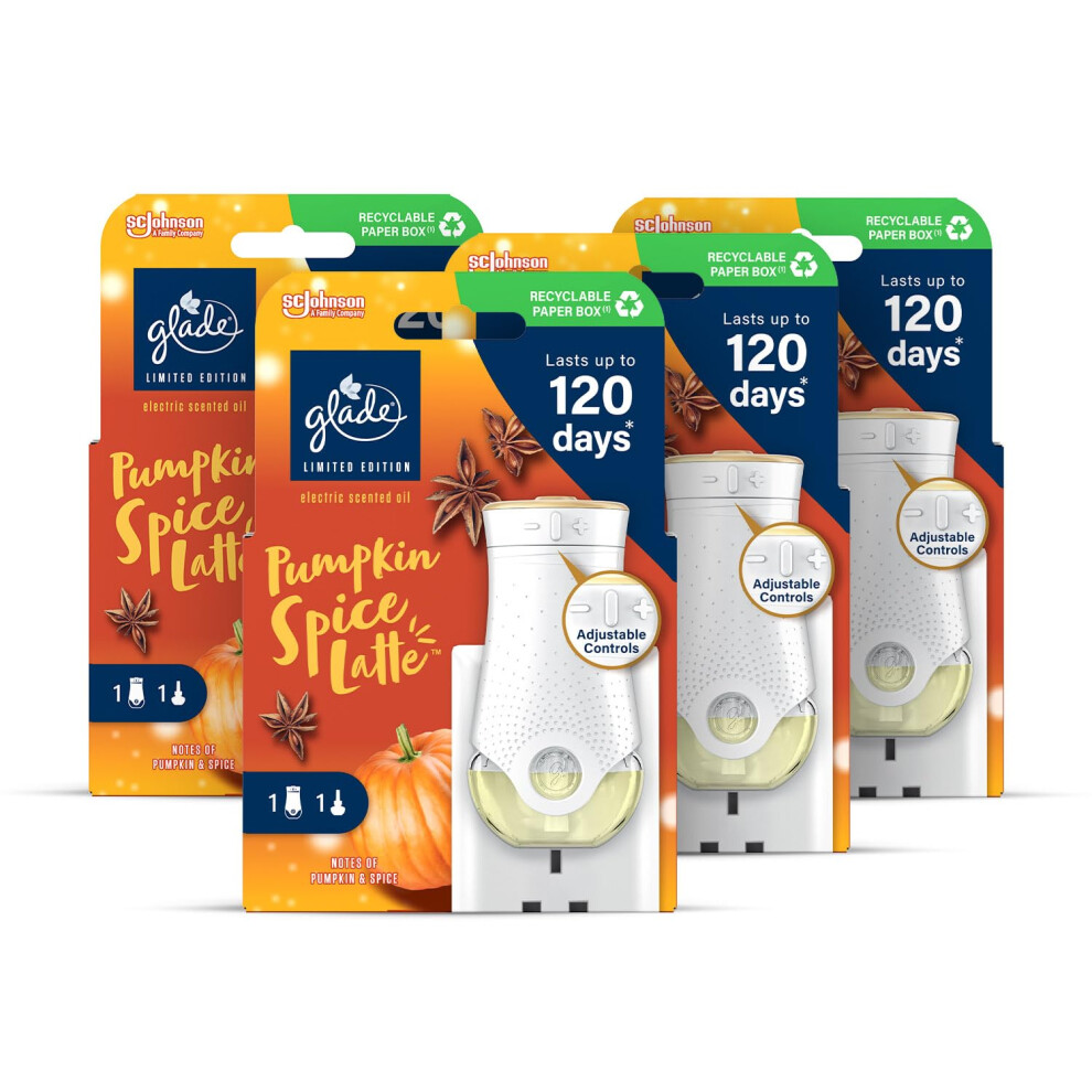 Glade Plug in Air Freshener Holder and Refill, Electric Scented Oil Room Air Freshener, Pumpkin Spice Latte, Pack of 4 Starter Kits, (4 x Holder and 4
