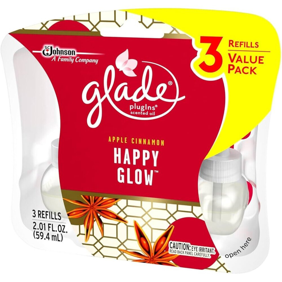 3 X Glade Electric Plug In Refill Apple Cinnamon Happy Glow