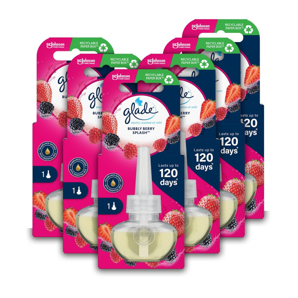 Glade Plug in Air Freshener Refill, Electric Scented Oil Room Air Freshener, Bubbly Bery Splash, Pack of 6 (6 x 20ml)