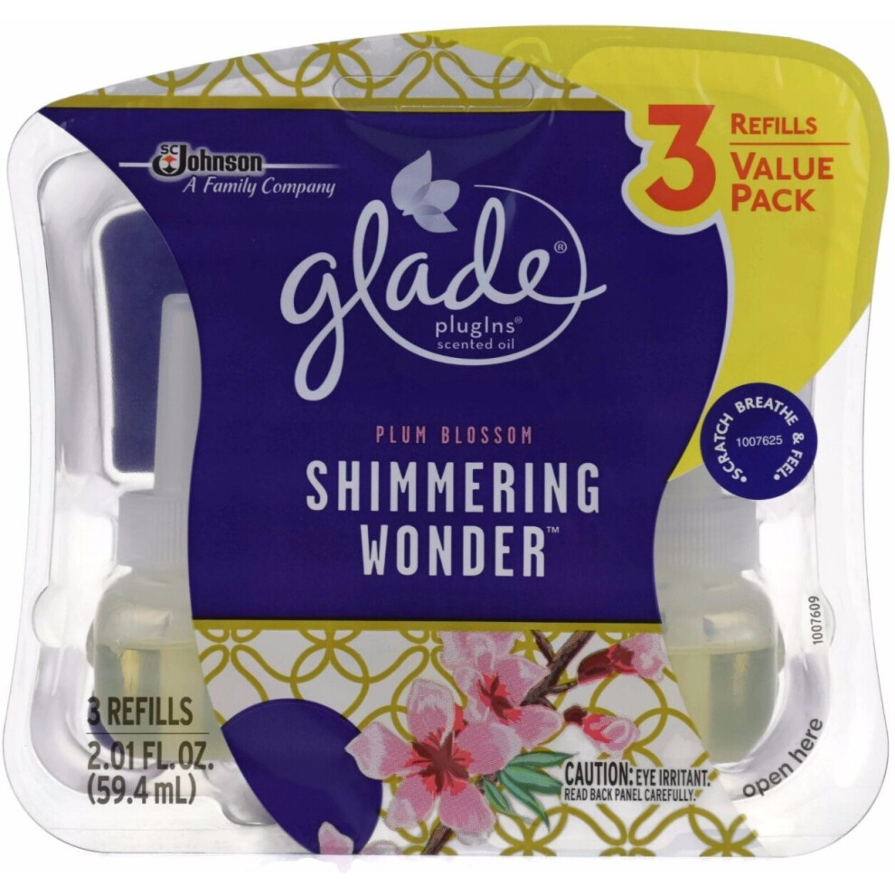 3 X Glade Electric Plug In Refill Plum Blossom Shimmering Wonder