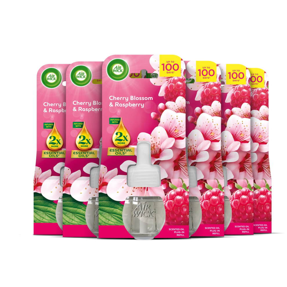 Air Wick Cherry Blossom & Raspberry Liquid Electrical Single Refills 6x19ml, Lasts for up to 100 Days, Air Freshener