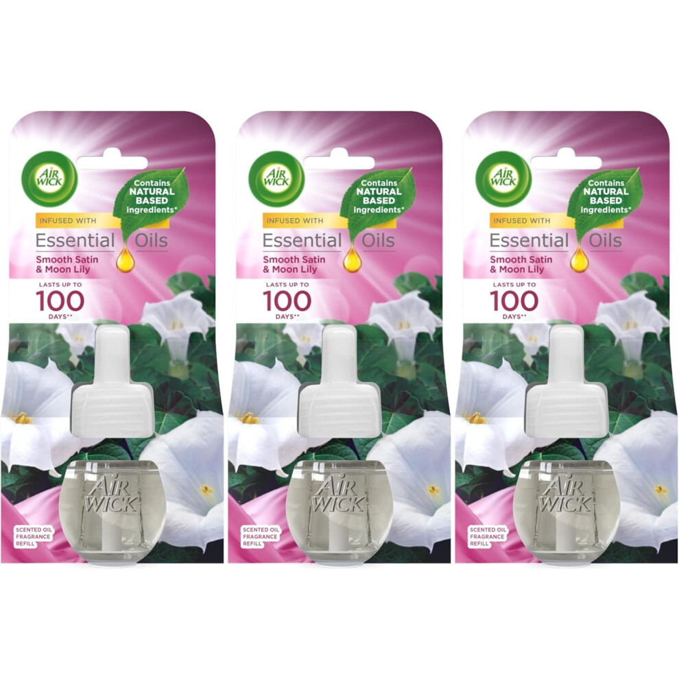 3 X AIR WICK PLUG IN OIL REFILLS - SMOOTH SATIN & MOON LILY