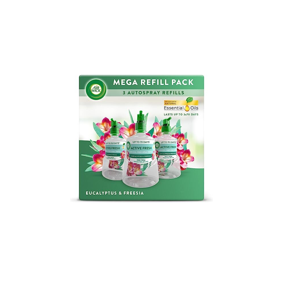 Air Wick Aerosol-Free Automatic Air Freshener Spray |Eucalyptus & Freesia | 3 Refills| 24x7 Active Fresh Odour