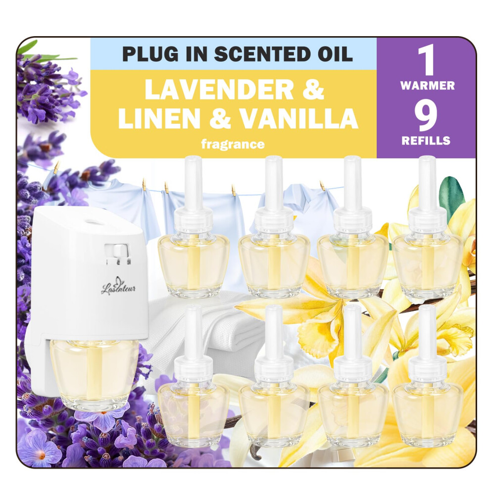 SCENTORINI Plug In Air Fresheners Refills with 1 Electrical Plug in Kit, Suitable for Air Wick & Glade Air Freshener Refills, 9+1 Packs