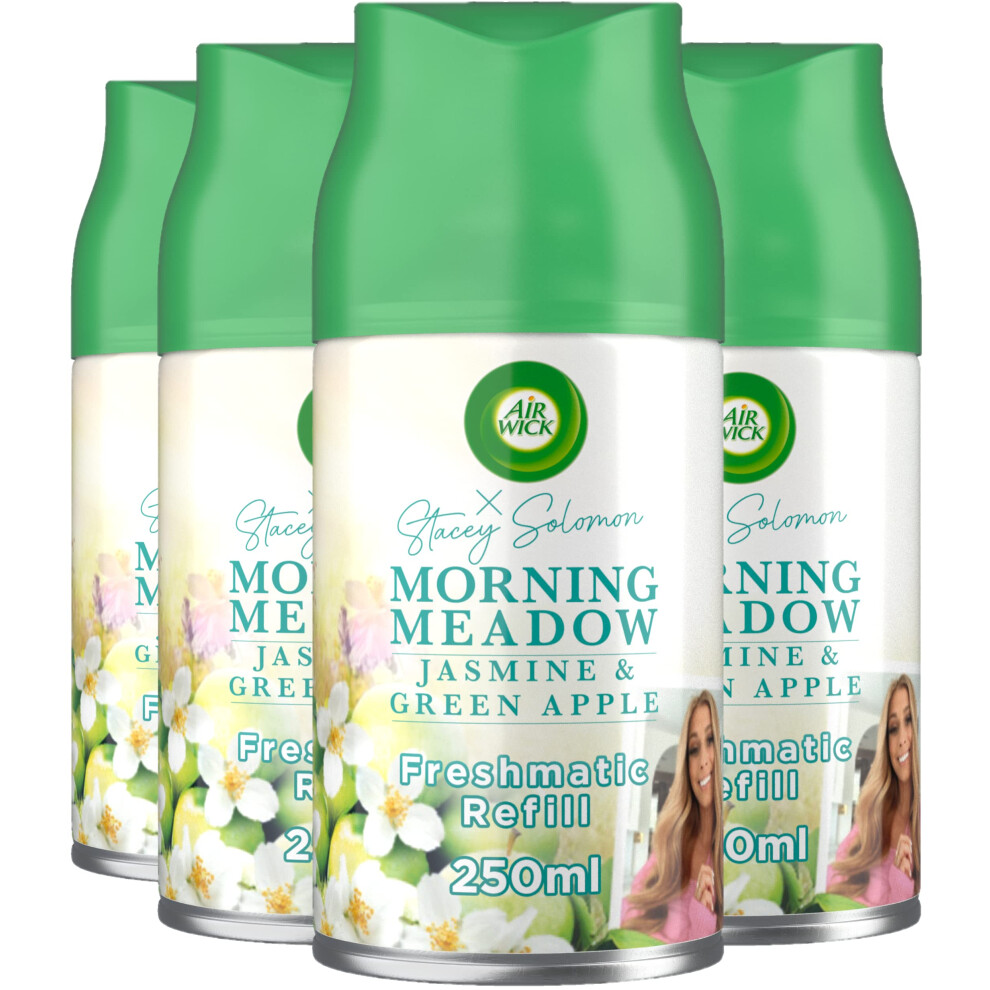 Air Wick Automatic Air Freshener Freshmatic Spray Refills, Morning Meadow, Pack 4 x 250ml, Natural Essential Oils, Last up to 280 Days, Air freshener