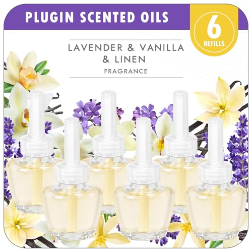 Scent-Hi Plug in Air Freshener Refills, Plug in Diffuser Refill Scent 6 Pack, Long lasting Fragrance, Compatible with Air Wick, Glade Plugin(Lavender, Linen, Vanilla)