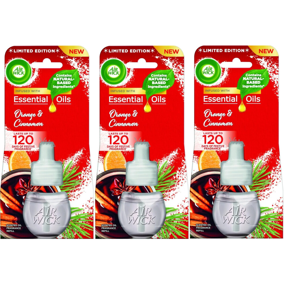 3 X Air Wick Electrical Plugin Oil Refills - Orange & Cinnamon