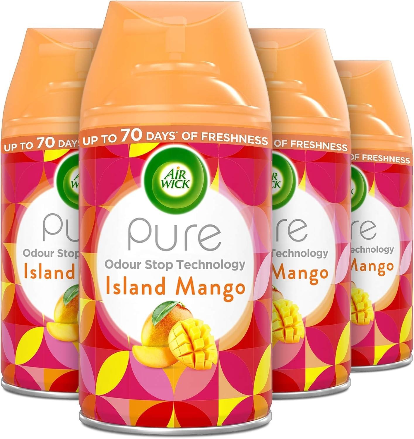 Air Wick Automatic Air Freshener Freshmatic Spray Refills, Island Mango, Pack 4 x 250ml, Natural Essential Oils, Last up to 280 Days, Air freshener