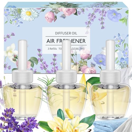 Scent-Hi Plug in Air Freshener Refills, Plug in Diffuser Refill Scent 3 Pack, Long lasting Fragrance, Compatible with Air Wick, Glade Plugin(Lavender, Linen, Vanilla)