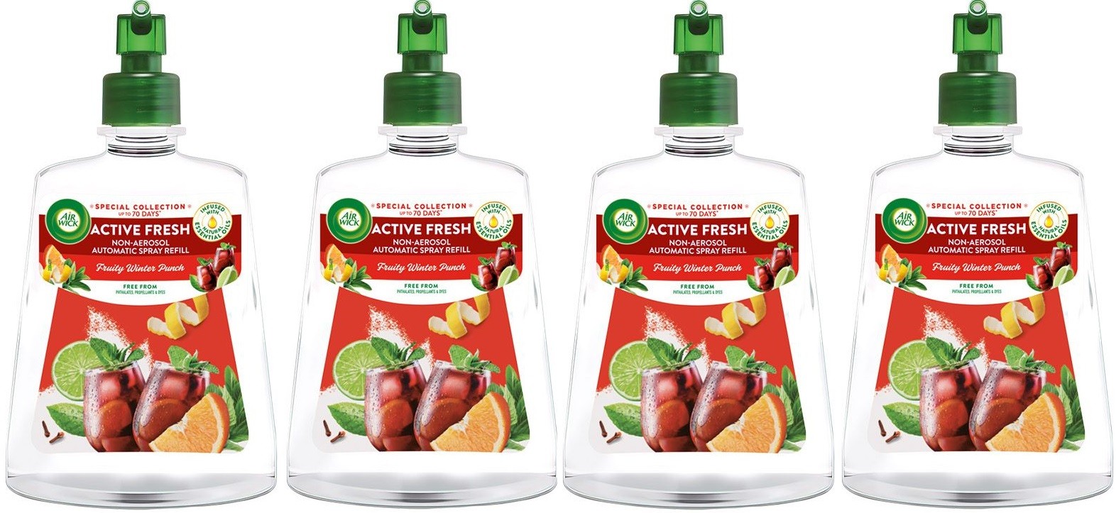 4 X Air Wick Active Fresh Non Aerosol Automatic Spray Refills 228ml - Mulled Win