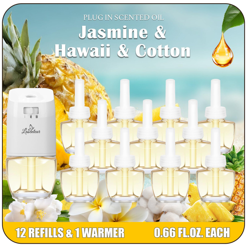 SCENTORINI Plug In Air Fresheners Refills with 1 Electrical Plug in Kit, Suitable for Air Wick & Glade, 3 Fragrance Hawaii, Jasmine, Cotton, Air