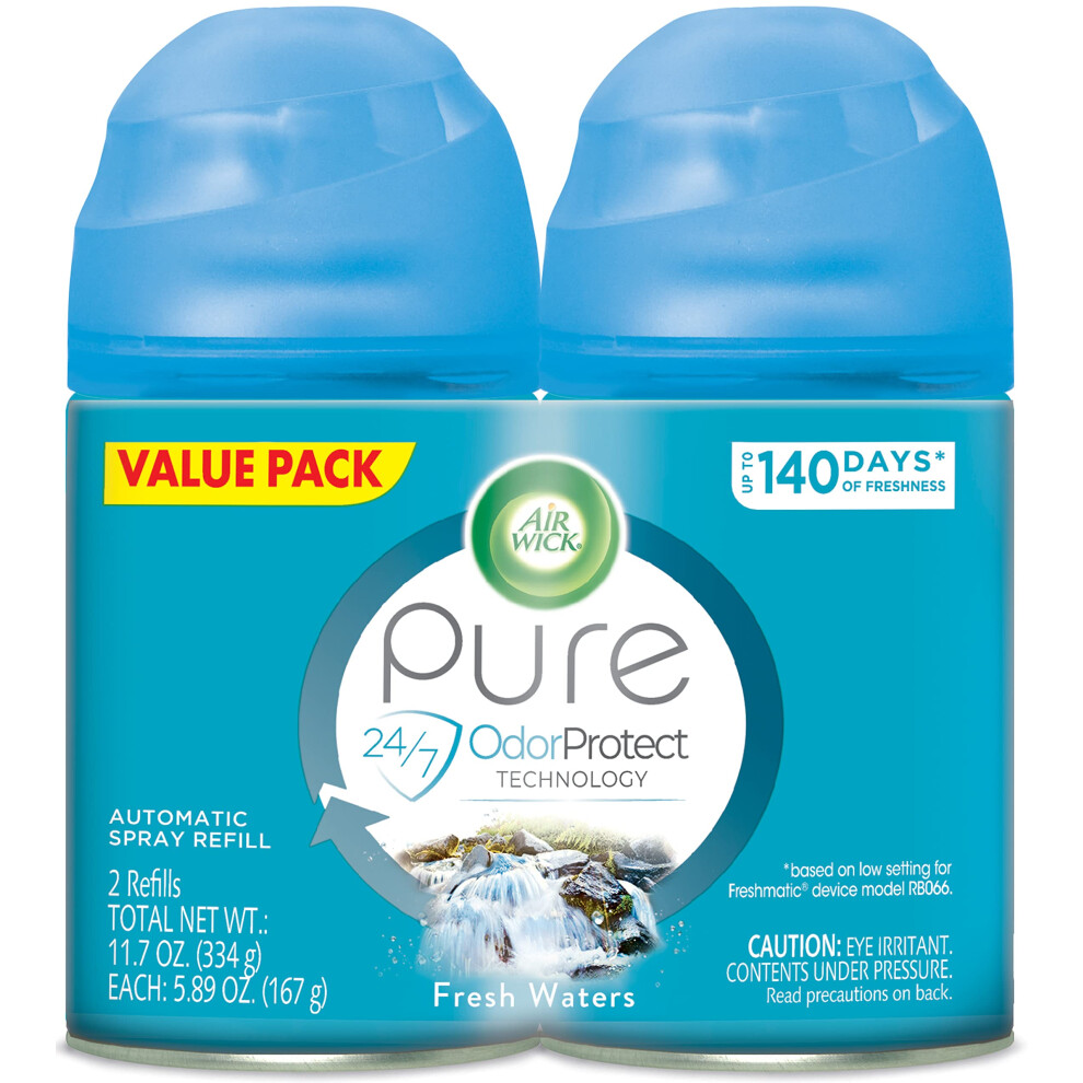 Air Wick Pure Freshmatic 2 Refills Automatic Spray, Fresh Waters, 2ct, Air Freshener, Essential Oil, Odor Neutralization, Packaging May Vary