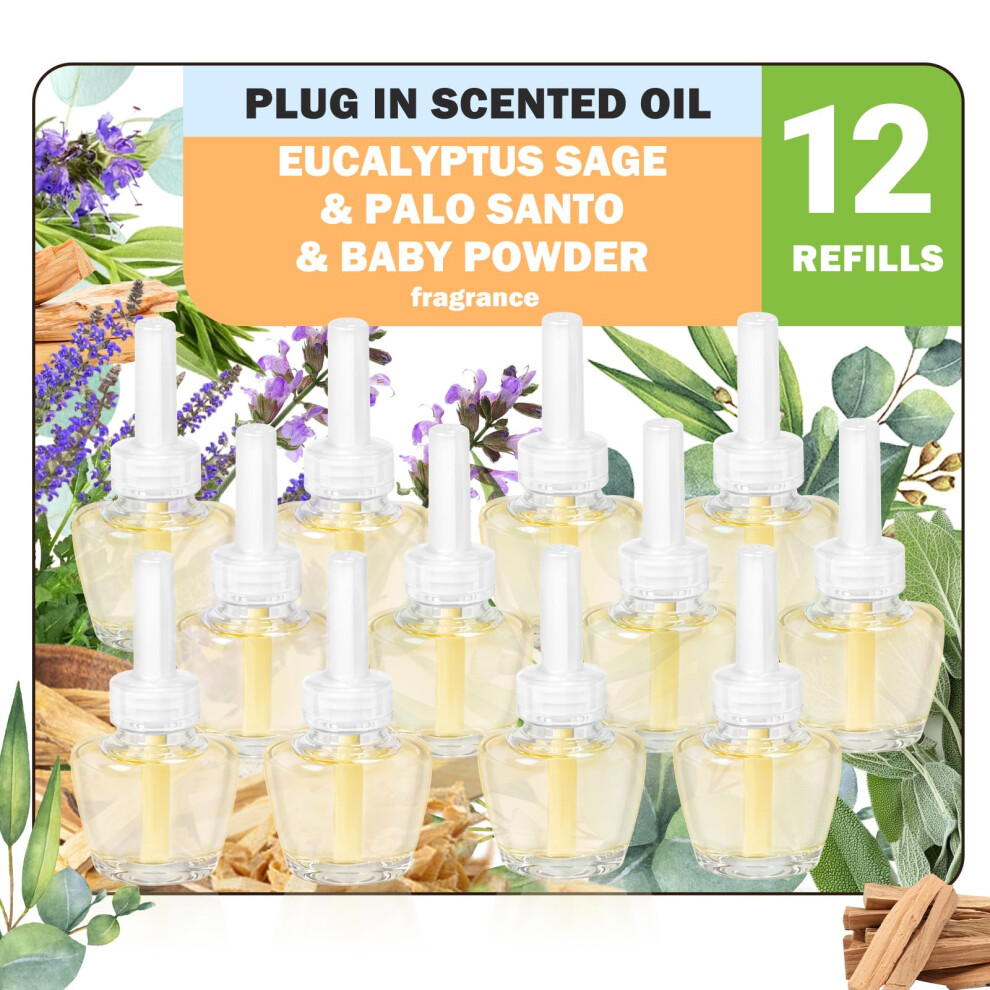 SCENTORINI Plug In Air Fresheners Refills, Suitable for Air Wick & Glade, 3 Fragrance Baby Powder, Eucalptus Sage, Palo Santo Plug In Electrical Air Freshener Refills, 12 Packs