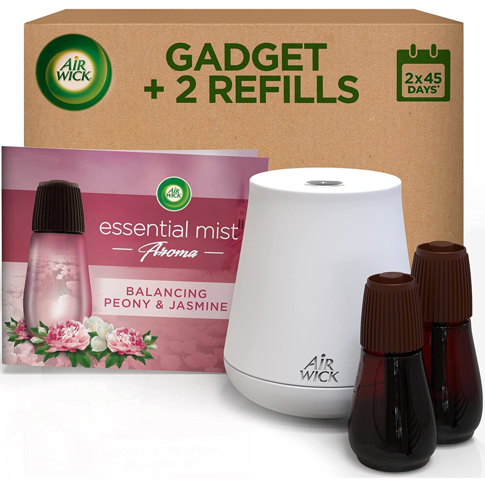 Air Wick Air Freshener Essential Oils Bundle Pack (1 Gadget + 2 Refills), BALANCING PEONY & JASMINE, Lasts Total Up to 90 days
