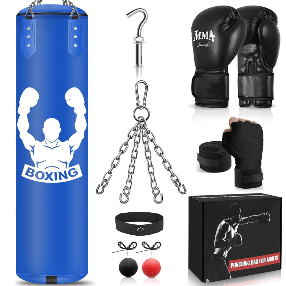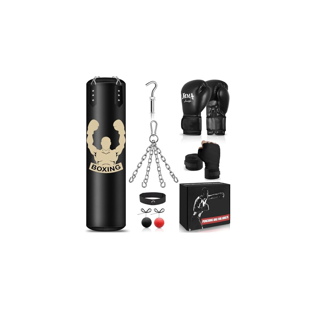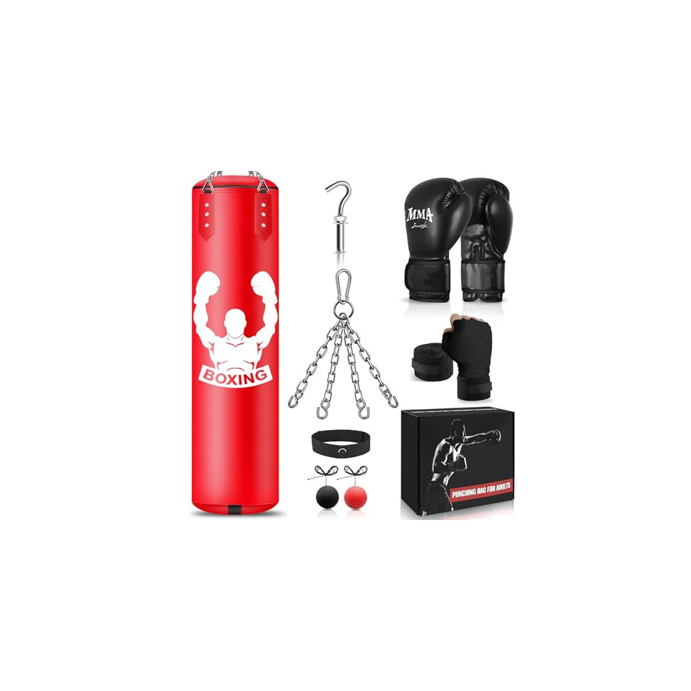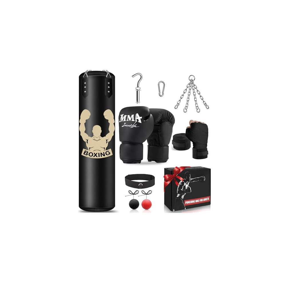 NZQXJXZ Heavy Bag Boxing for Adults, 4FT Boxing Punch Bag, Boxing Training Equipment with Unfilled Kicking Bag, Reflex Ball, MMA Gloves, Wristband,