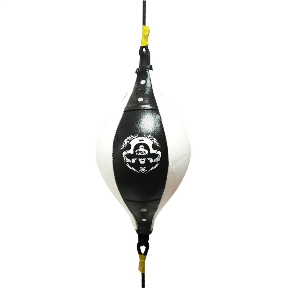 Heavy Duty PU Leather Speed Bag w/Lightweight Latex Bladder Boxing MMA Muay Thai Single end Speedbag Reflex Ball Boxing Equipment (White/Black)