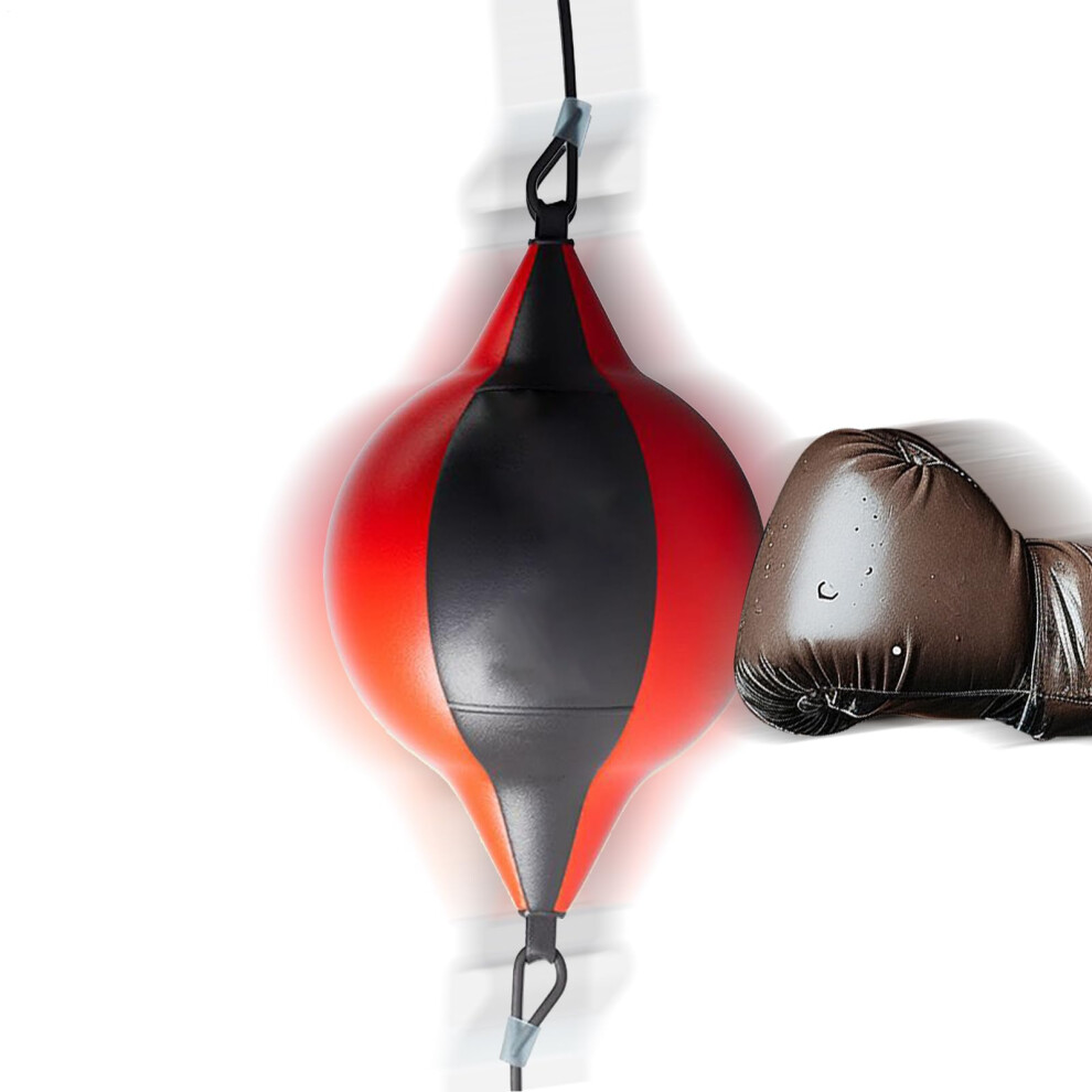 Heavy Duty PU Leather Speed Bag w/Lightweight Latex Bladder Boxing MMA Muay Thai Single end Speedbag Reflex Ball Boxing Equipment (Red/Black)