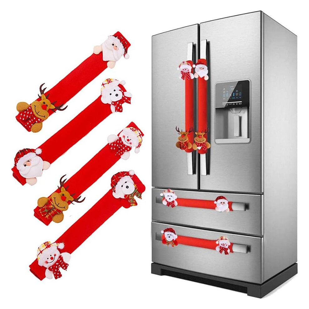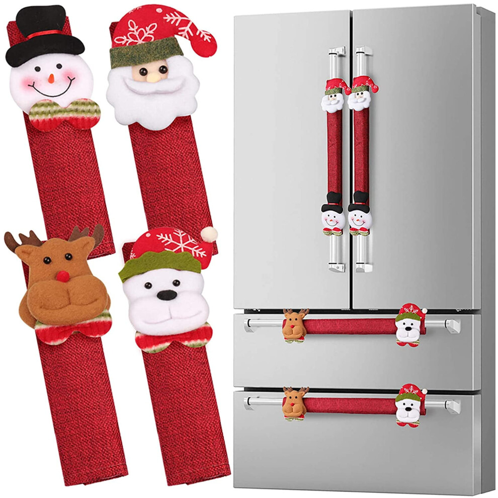 Kitchen Appliance Covers, Christmas Refrigerator Handle Covers, Red Festive Handle Protectors with Santa and Snowman Motifs, Double Layer Lining Desig