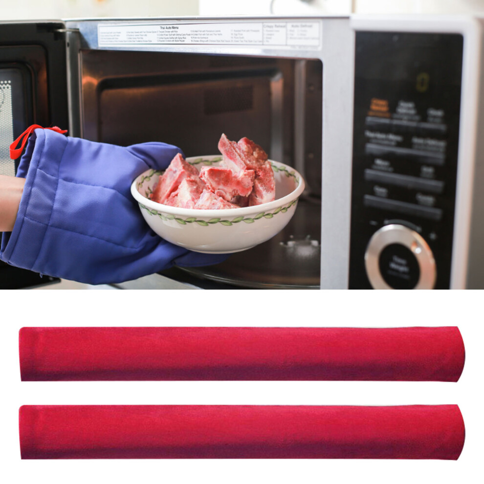 2pcs Soft Polyester Cotton Red Refrigerator Handle Cover Universal Oven Microwave