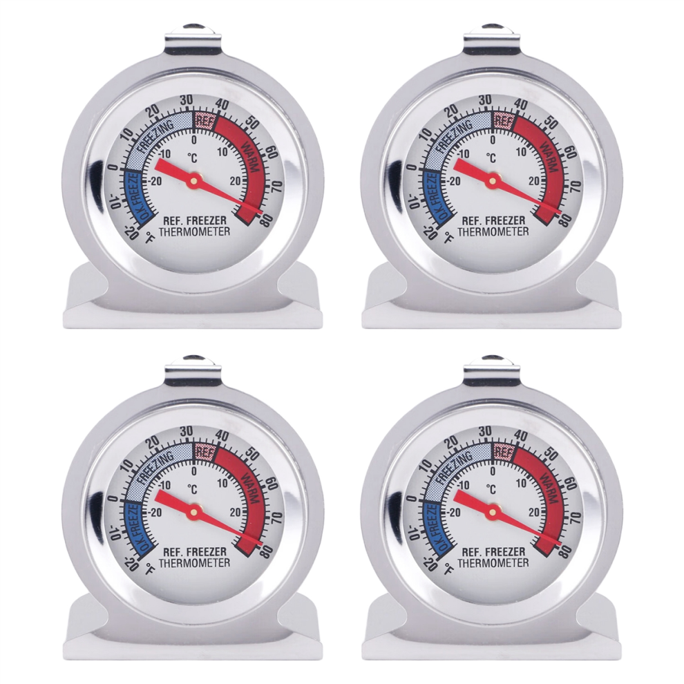 4Pc Refrigerator Thermometer, with Red Indicator Thermometer for Freezer Refrigerator Cooler with Hanging Hook and Stand