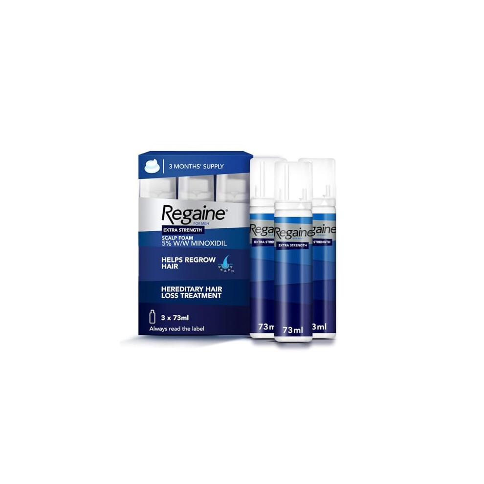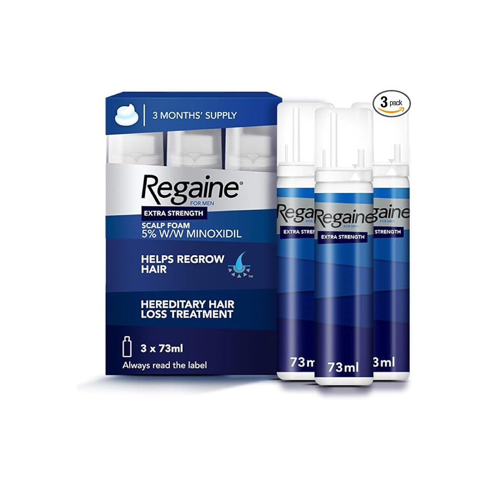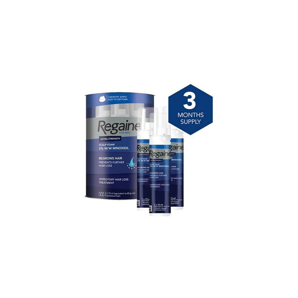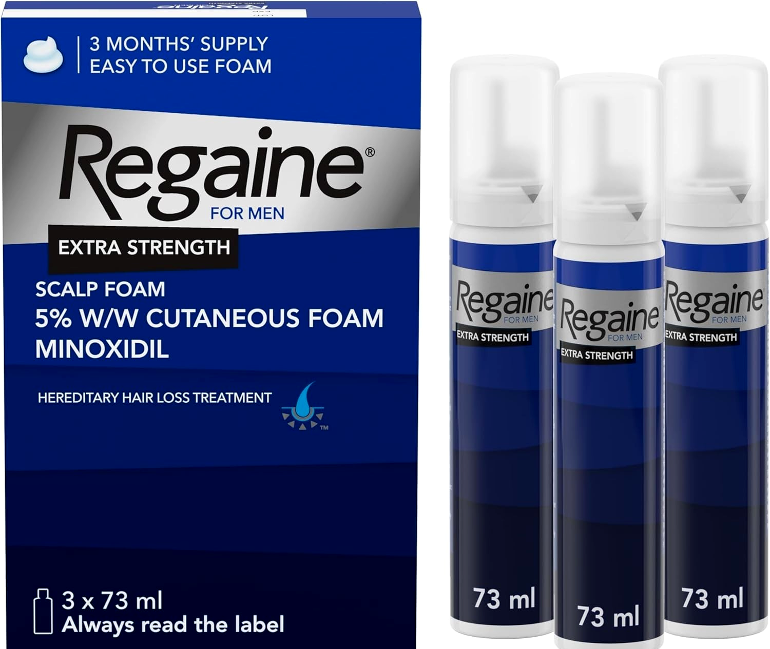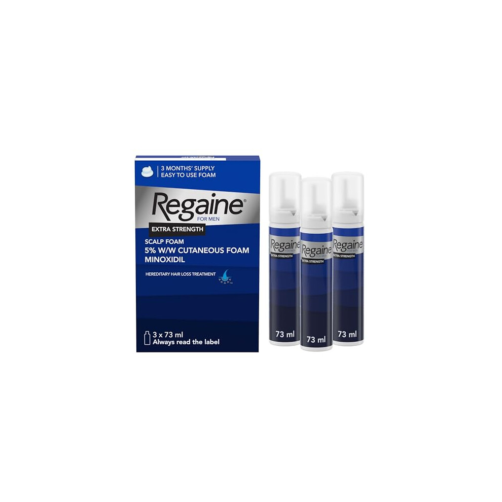 Regaine for Men Extra Strength Scalp Foam 5 Percent w/w Cutaneous Foam Minoxidil , 3 Month's Supply Easy to Ese Foam, 3 x 73 ml