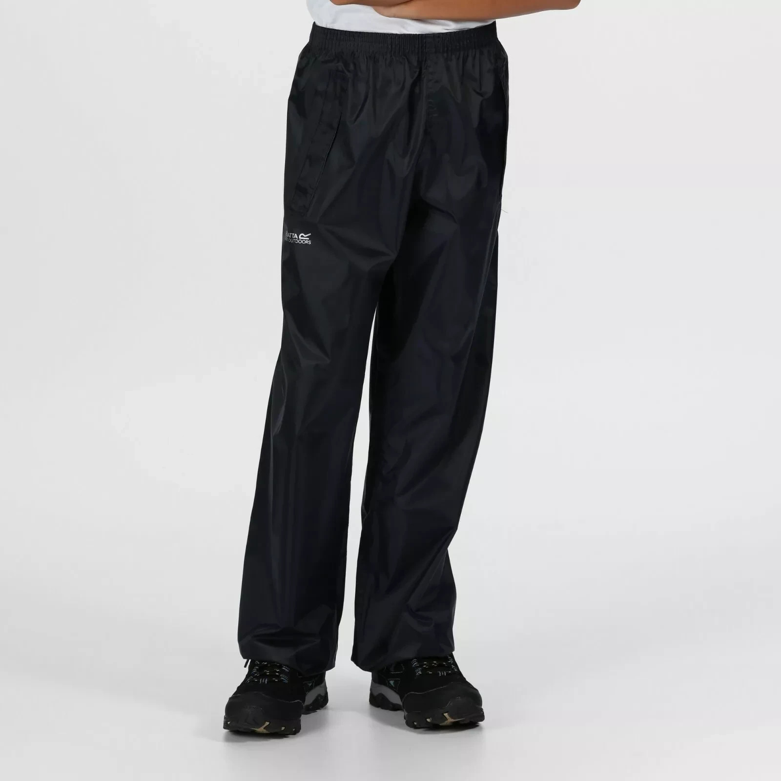 Regatta Unisex Kids Stormbreak Outdoor Overtrousers, Waterproof and Lightweight Perfect for Outdoors, Camping, Hiking & Walking Black