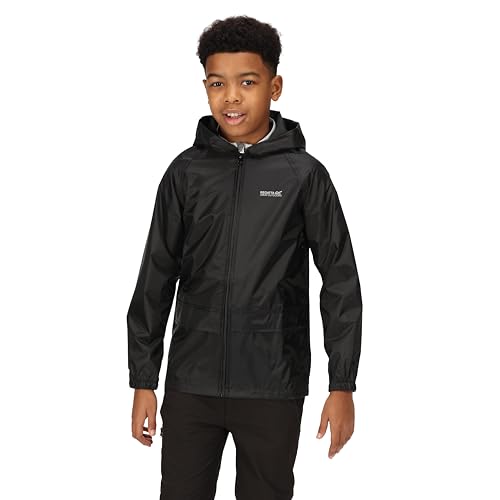 Regatta Kid's Stormbreak Waterproof Taped Seams 2 Side Pockets Press Studs at Hem Over Trousers Jacket, Black, 13 yr ,W908 800K13