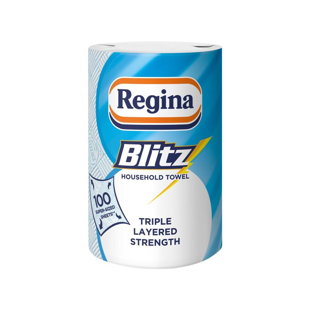 Regina Blitz Household Towels – 6 Triple Layered Rolls, 100 Sheets Per Roll, Paper Packaging, FSC Certified Paper, Recyclable Packaging, 60Percent Larger Than Standard Kitchen Roll Sheets