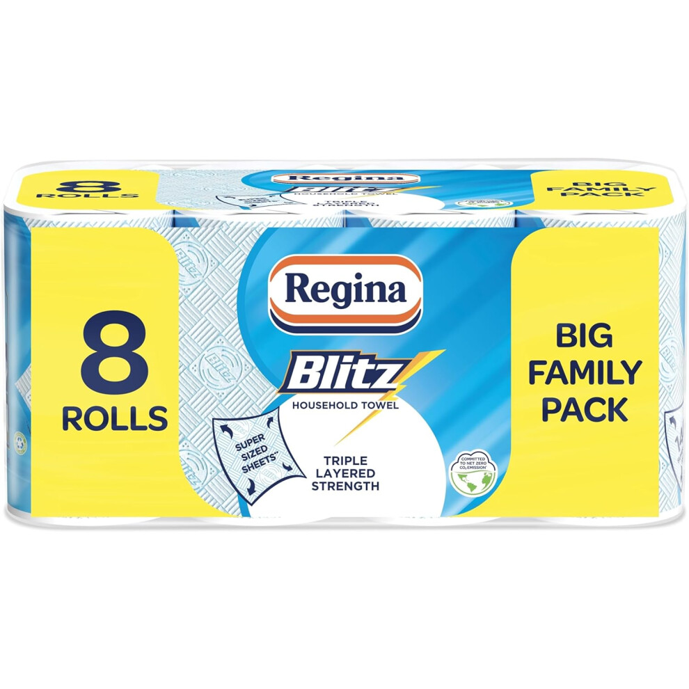 Regina Blitz Household Towels ? 8 Triple Layered Rolls, 70 Sheets Per Roll, Paper Packaging, FSC Certified Paper, Recyclable Packaging, 60% Larger