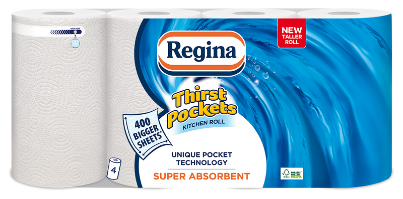 Regina Thirst Pockets Kitchen Roll - 12 Rolls, 1,200 Super Absorbent Sheets, Unique Pocket Technology, Your Ideal Kitchen Companion, FSC certified