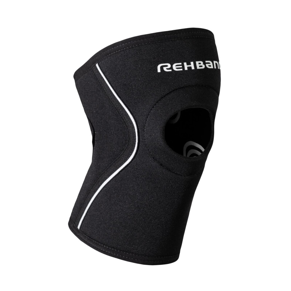 Rehband Open Patella Knee Brace 5mm Neoprene, Supportive Knee Sleeve with Patella Support, Knee Protection for Strength Training, Jogging & Fitness, Colour:Black, Size:Medium