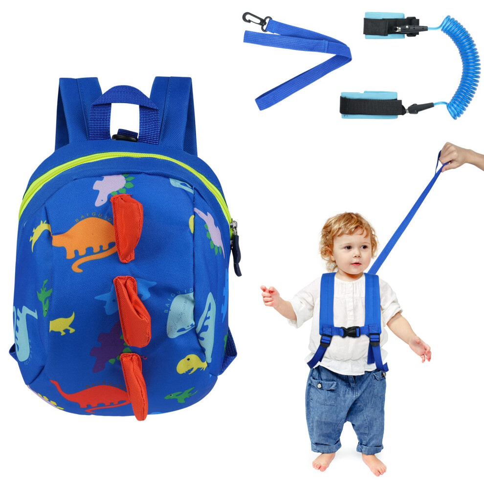 AOMIG Baby Reins, Baby Walking Reins and Toddler Safety Harness, Dinosaur Baby Reins Safety Leash Baby Toddler Anti Lost Belt Reins for Toddlers Boys and Girls (Blue)