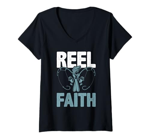 Womens Fun Fishing Reel Faith Religion Fun V-Neck T-Shirt