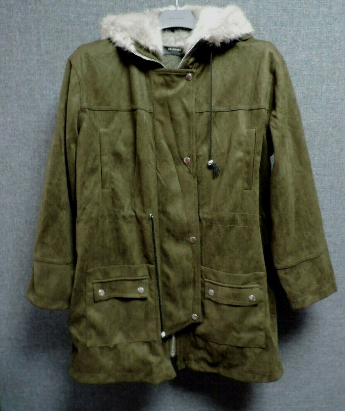 Religion Clothing Faux Suede Hooded Parka Jacket Khaki UK 14 EU 42 LN110 AF 01
