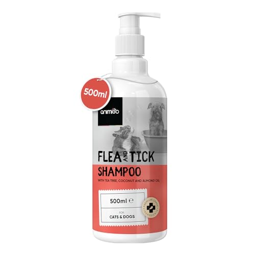 Flea Shampoo Dog & Cats 500 ml - Flea Remedy with Tea Tree Oil - Against Ticks, Fleas & Itching - Alternative to Flea Spray, Tick Collar, Flea Comb - With Coconut Oil, Almond Oil - Natural Ingredients