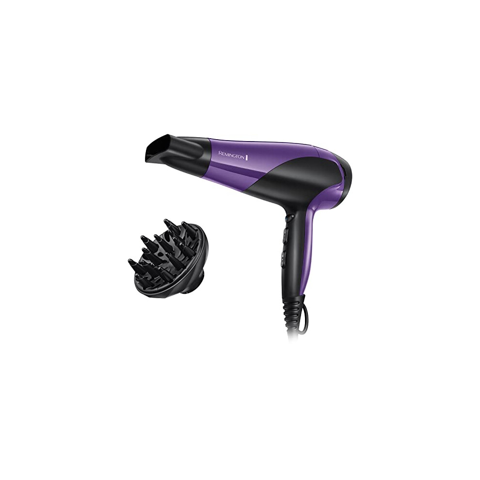 Remington Hair Dryer Ionic (Powerful, Fast Professional Styling, Diffuser, Concentrator, Ionic Conditioning for Frizz Free Hair, 3 Heat / 2 Speed Settings, Cool Shot, 2200W, Purple) D3190