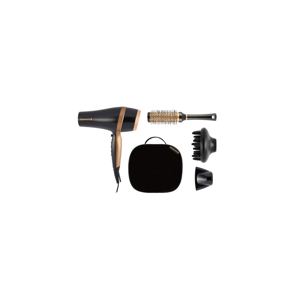 Remington Hair Dryer (Gift Set with Concentrator & Diffuser, Ceramic Ionic Grille, 3 Heat & 2 Speed Settings and Cool Shot, Premium Storage Bag, Roun