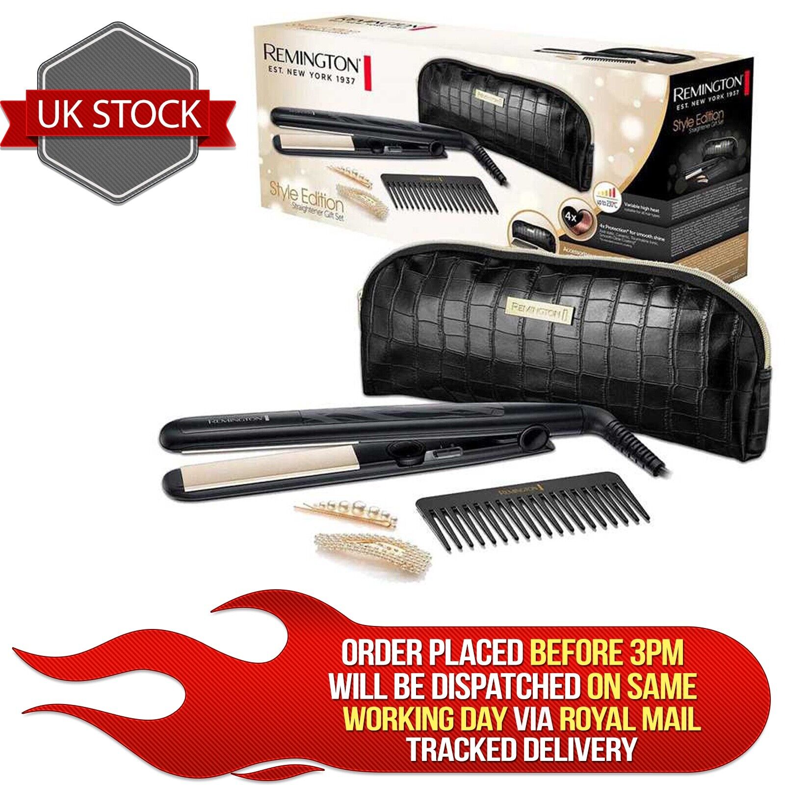 Remington Hair Straightener Ceramic Iron Styler Comb & Clips Gift Set - S3505GP