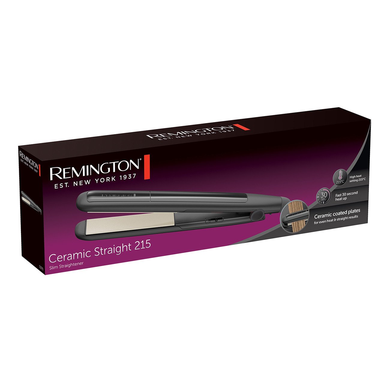Remington Slim Hair Straightener - Ceramic, 110mm Plates, 215°C, 30s Heat, S1370