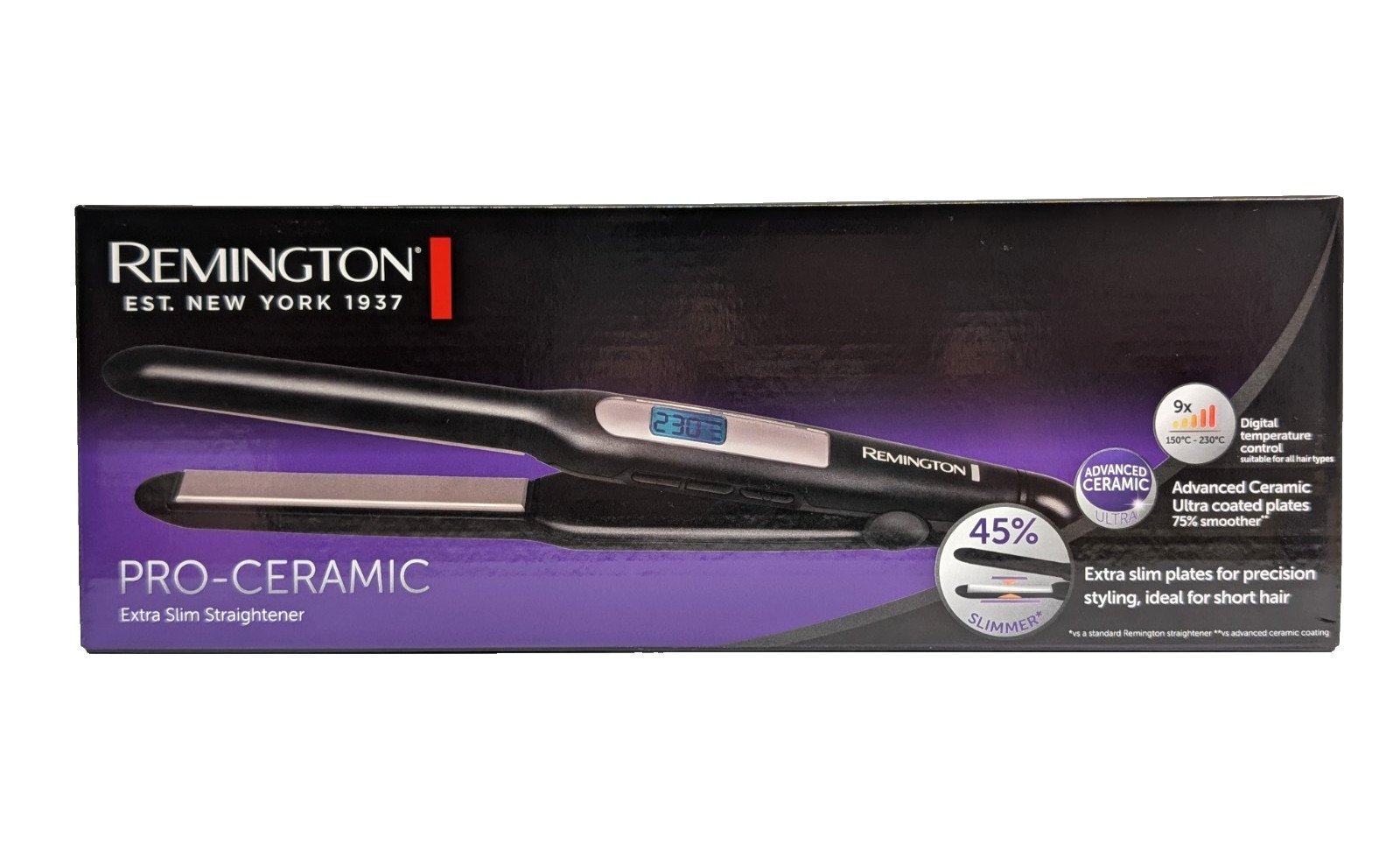 Remington Extra Slim Hair Straightener Ceramic Plates 9 Digital Temperatures