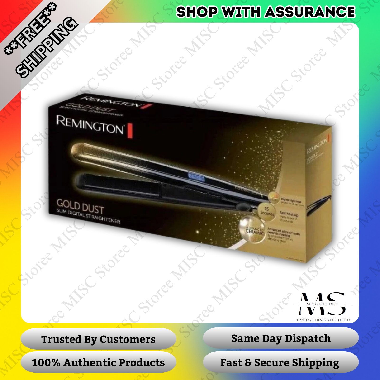 REMINGTON Gold Dust Slim Digital Hair Straightener Ceramic Coating 230°C