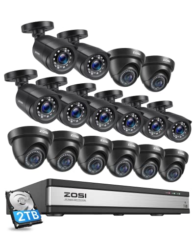 ZOSI H.265+ 16 Channel 1080P Security Camera System,16CH CCTV DVR with Hard Drive 2TB for Home 24/7 Recording and 16x 1080p Surveillance CCTV Camera,Indoor Outdoor,Night Vision,Remote Access
