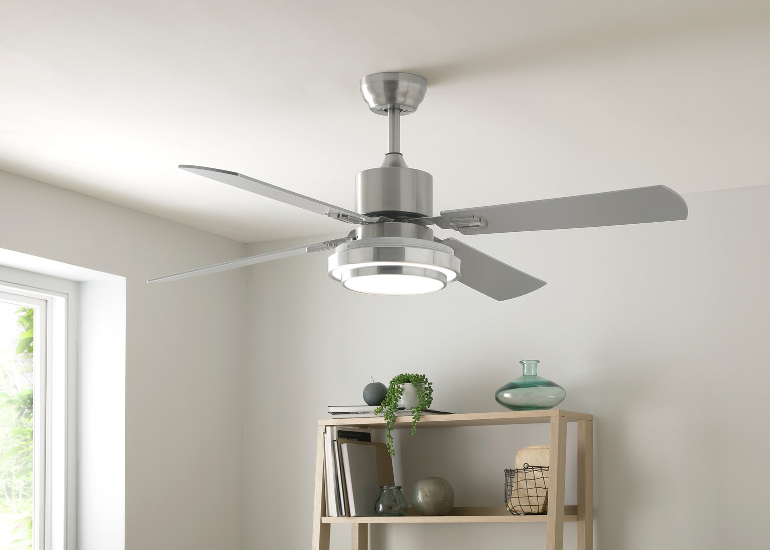 Argos Home Satin Nickel Remote Control Ceiling Fan - Silver
