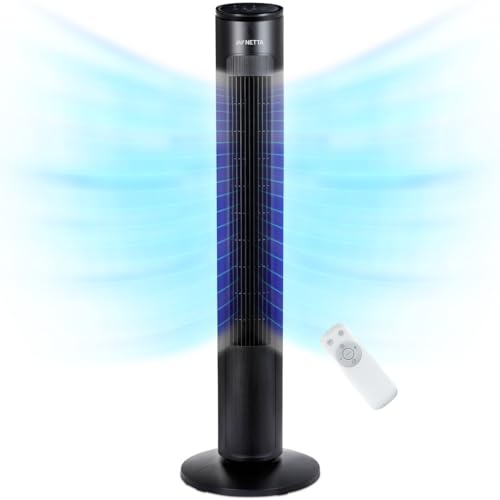 NETTA Tall Tower Fan 42 Inch, Quiet Bladeless Tall Fan,7 Hour Timer with Remote Control, Oscillation, LED Touch Display, 3 Modes & 3 Speed Settings for Home & Office - Black