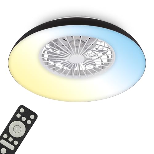 BRILONER - LED Ceiling Light with Fan, Remote Control, Quiet DC Motor with 5 Speeds, Adjustable CCT and Dimmable Lighting, LED Fan, Ceiling Fans, Lights Living Room, 48.5x16 cm, Black, White
